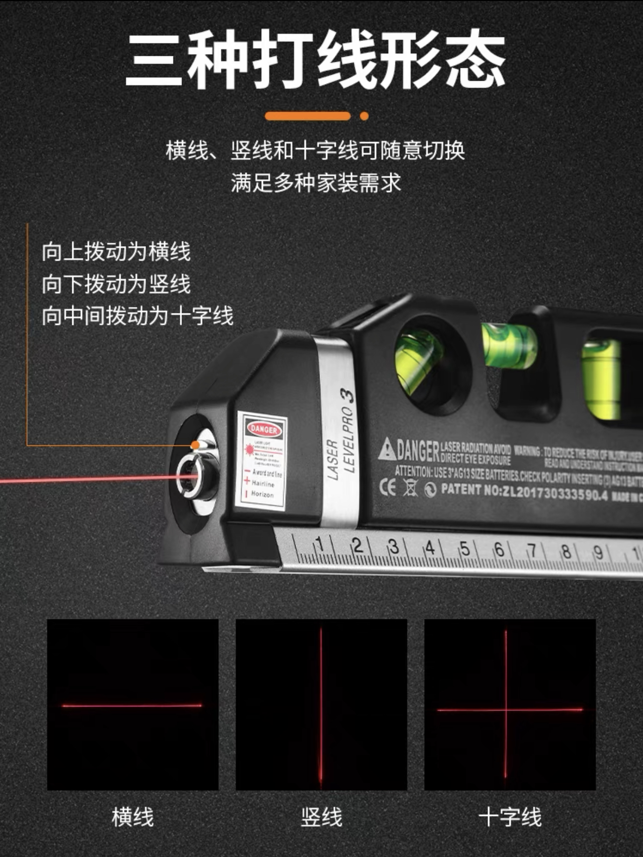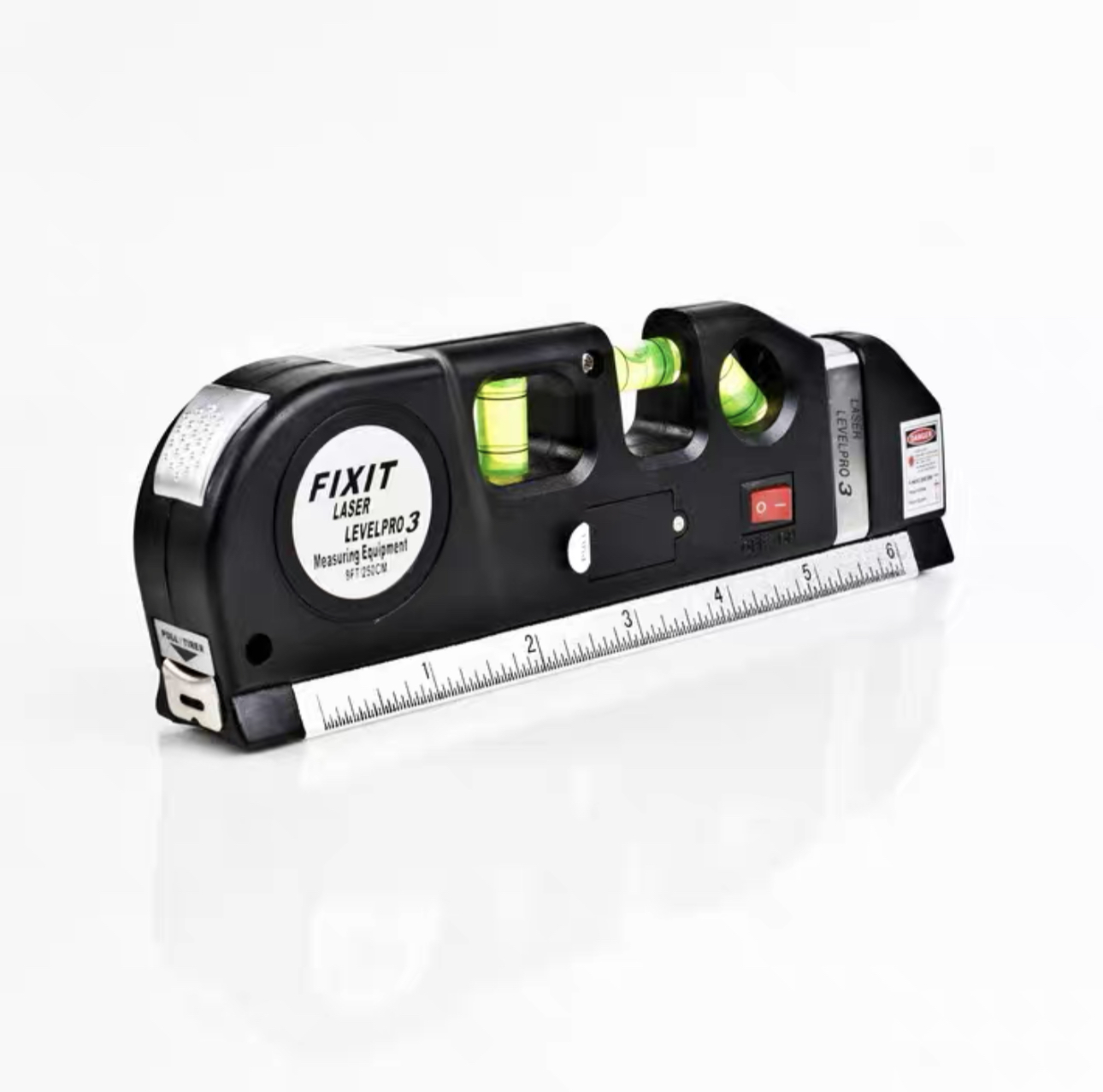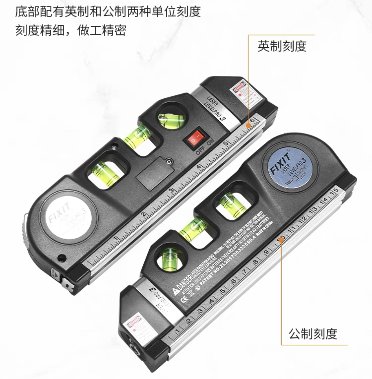 • 【Diseño Triple】 - Combina una cinta métrica de ajuste preciso, una burbuja de nivelación de tres posiciones y un nivel láser para proporcionar la máxima precisión tanto en planos horizontales como verticales